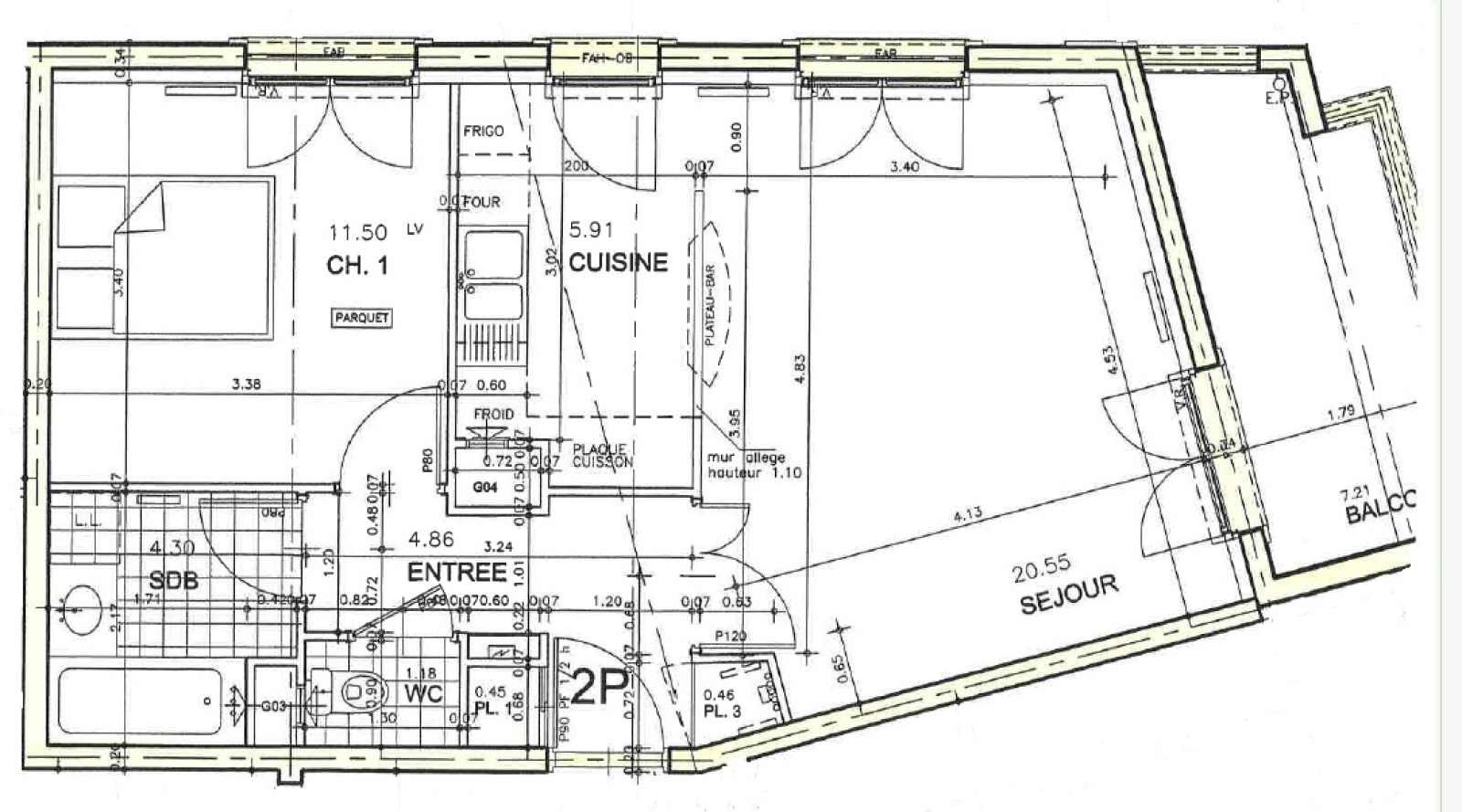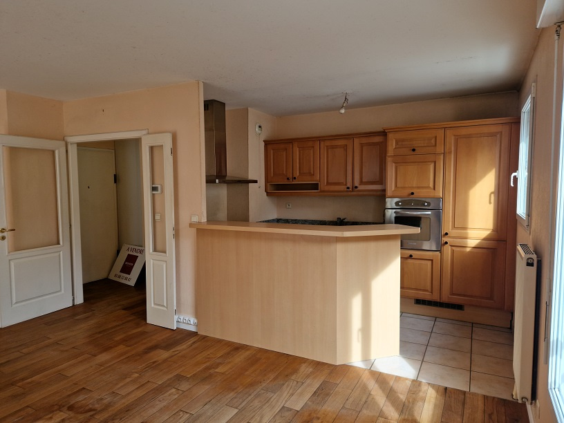 2ème étage avec ascenseur d'un immeuble années 2000, appartement 2 PIECES d'environ 50m2 + grande Terrasse de 7,10 m2, comprenant : entrée avec placard, cuisine équipée ouverte sur un séjour donnant sur terrasse, chambre à coucher, salle de bains avec baignoire et meuble vasque avec 2 portes, miroir et bandeau lumineux, WC séparé, parquet teck dans pièces et dégagement, carrelage dans pièces d'eau, chauffage collectif gaz avec comptage individuel,