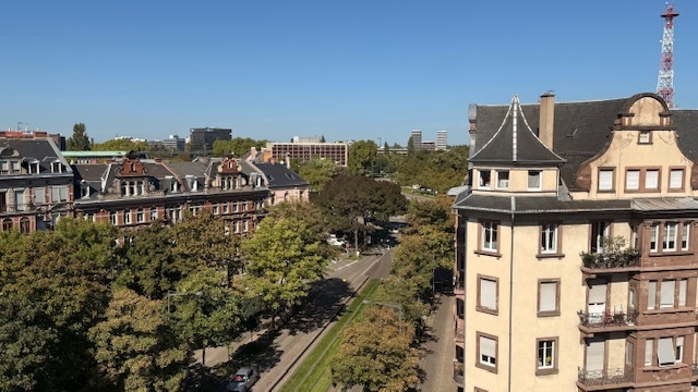 Il offre 5 chbres, 2 SE, 2 WC, 1 cuisine indépendante et surtout des extérieurs d’exception : 2 balcons et 1 terrasse filante qui embrassent tout l’appartement, offrant une vue à 360° sur Strasbourg.